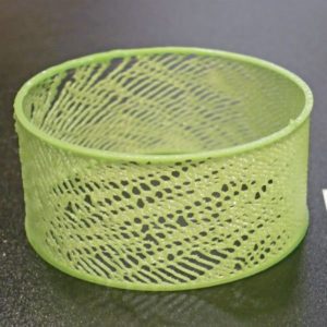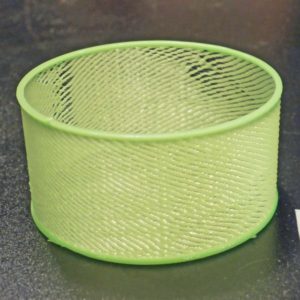 螺旋 3D 印刷にちかい「3D ゆらぎ印刷」または「自己組織印刷」という方法で,温度や風などの物理的な条件によって変化する模様 (パターン) がつくれます.この方法は螺旋 3D 印刷にちかく,フィラメントの吐出量を一定にする点はおなじですが,その量を減らします.また,ピッチ (層の厚さ) も減らします.