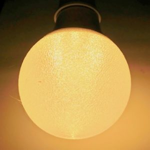 光がほぼ一様に拡散するが,こまかい変化があるタイプの 3D デザインランプが「スプレッド型ランプ」です. 光が一様に拡散するという点では従来の電球カバーにちかいのですが,巻かれたフィラメントにはこまかい凹凸などがあり,それによって光はこまかく変化します. そのため,たとえば和紙のような風合いになります. 表面に毛がはえている場合もあります.光をほぼ一様に拡散する点では普通の LED 電球にちかいのですが,和紙のようにある程度は光源が透けて見え,またこまかい変化がある点ではちがっています.