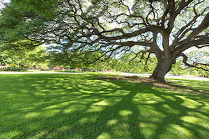 さらに,透明なランプシェードの場合,「陰」が意味するのは何なのでしょうか? 光をさえぎるものの場合,たとえば樹木であれば太陽の裏側からそれをみたのが陰です (下の写真には影と陰が両方うつっていて,「陰影」ということばをつかうのにふさわしい情況だとおもわれます).ランプシェードの場合は光源つまり電球をシェードごしに見たのが陰なのでしょうか? それは,当社の 3Dデザインランプについては,これまで「きらめき」と呼んできたものです.きらめきは陰というよりは光なのですが,ランプシェードによって変化したものという意味では陰でもあるのだとおもいます.下の写真に樹木がつくりだす影と陰がうつっているのと同様に,上の写真にはランプシェードがつくりだす影と陰がうつっていると解釈できます.