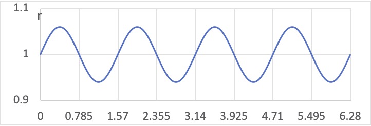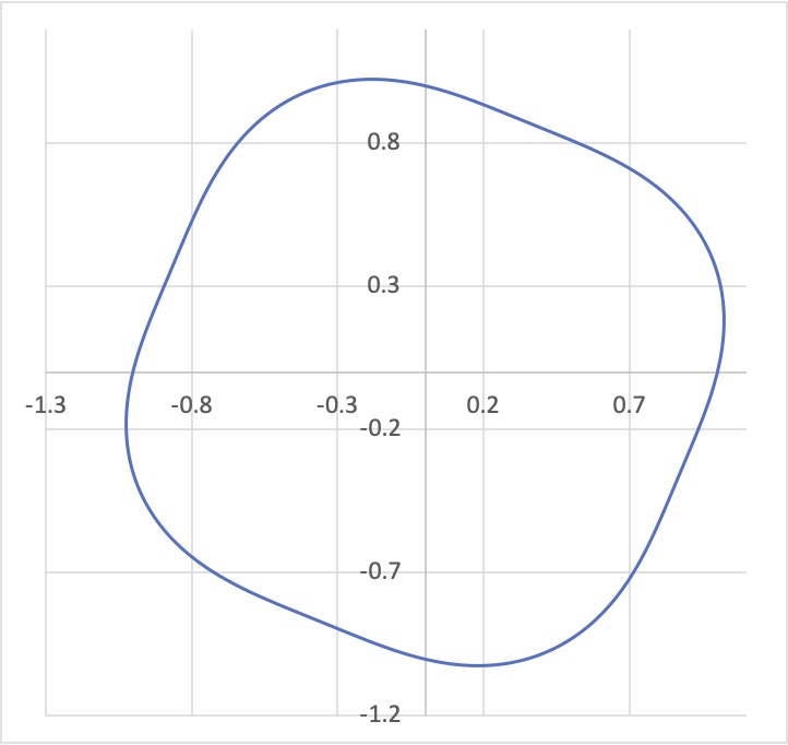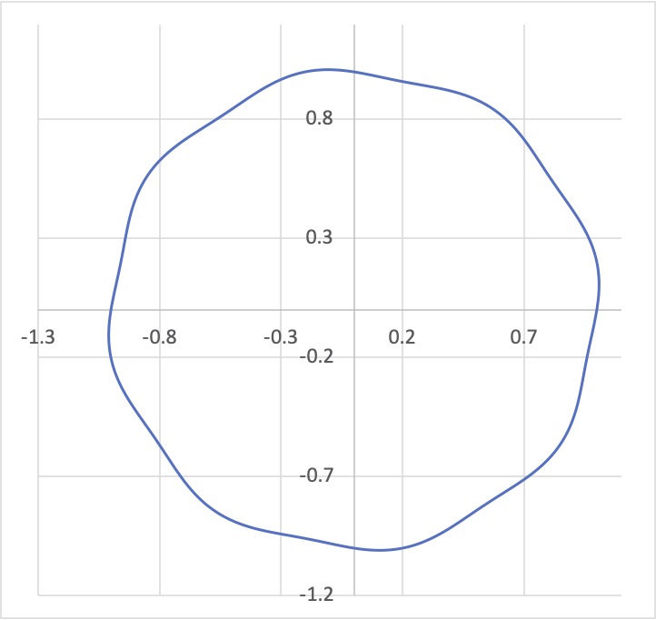 これを極座標でえがく (もとの横軸を角度,縦軸を半径とする) とつぎのようになります.
