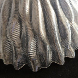 しかし,これまでこのようなめだったしわができたことはなかったので,さらに原因を追求しました.最初は 3D プリンタに問題が生じたのではないかとうたがいましたが,そうではありませんでした.フィラメントを変えるとしわができなくなることがわかったのです.おなじ種類のフィラメントをいつも使用していますが,そのなかに 1 個だけ,しわができるものがあったのです.なぜしわができるのか,あいかわらずわかっていませんが,ともかく,フィラメントに問題があったことはあきらかです.