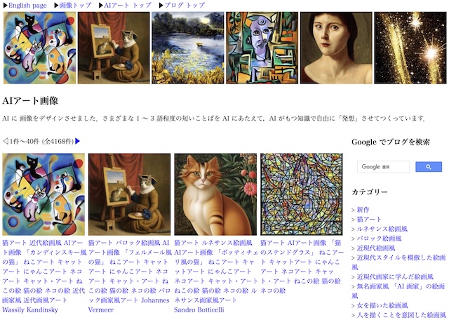 生成した AI アート画像一覧ページには現在 4500 以上のオリジナル画像をのせています.