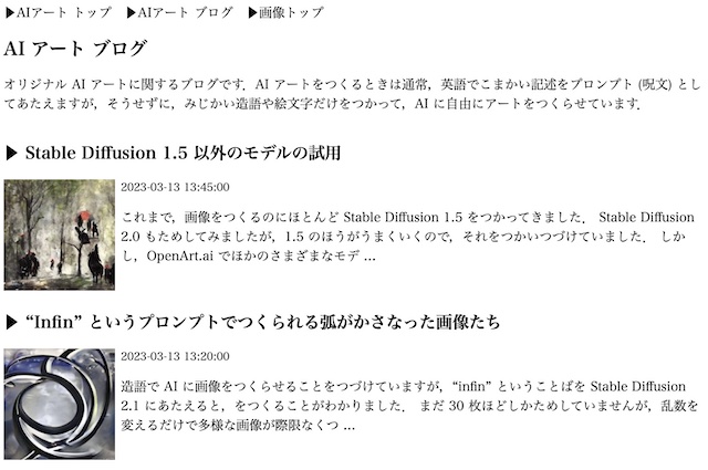 また,AI アート ブログも開設しました.AI アートの記事はこれまでカナダからのブログにのせてきましたが,そちらに投稿したものもあわせて,ここに掲載しています.