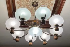 シャンデリアの周囲の 1 個がこわれた場合にも,お客様のご希望によって,もとの形とはちがう形のシェードを製造・販売したこともあります.