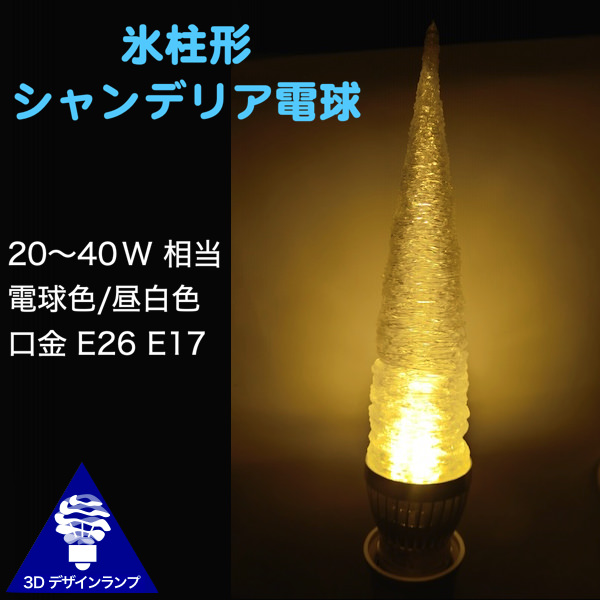 つらら (氷柱, 氷麗) をイメージした 3D デザイン電球を通販しています.シャンデリア電球につららのような長いカバーをつけた形です.実用にも,装飾としても,使えます.