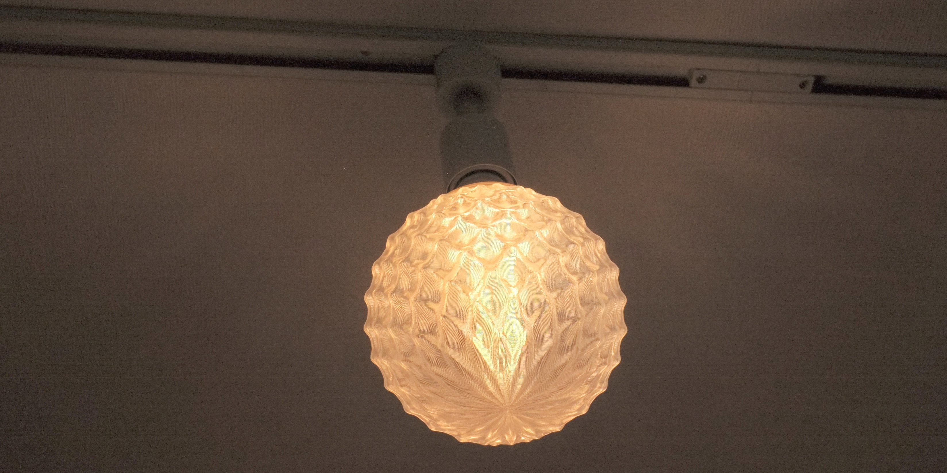 この電球はダクトレールにつけた裸電球用の器具でも魅力的にきらめきます.