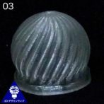 このキャンドルキャップは PLA というプラスティックをつかった 3D 印刷で 1 回らせん状にまきつけてつくっています.通常の 3D 印刷とはちがう「螺旋 3D 印刷」という特許技術をつかっています.同様の方法でつくっている地球儀の印刷のようすを YouTubeでみることができます.螺旋 3D 印刷はガラスや従来のプラスティックではできない細密な模様がつけられるのがひとつの特徴です.これらの模様は 20 波程度の波のくみあわせでできます.この商品では波のパラメタを変えてつくれる無限のパターンのうちの一部が選択できます.
