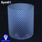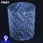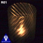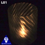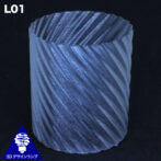 このキャンドルポットは PLA というプラスティックをつかった 3D 印刷で 1 回らせん状にまきつけてつくっています.通常の 3D 印刷とはちがう「螺旋 3D 印刷」という特許技術をつかっています.同様の方法でつくっている地球儀の印刷のようすを YouTube でみることができます.螺旋 3D 印刷はガラスや従来のプラスティックではできない細密な模様がつけられるのがひとつの特徴です.これらの模様は 20 波程度の波のくみあわせでできます.この商品では波のパラメタを変えてつくれる無限のパターンのうちの一部が選択できます.