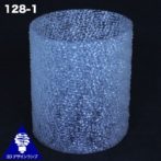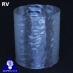 このキャンドルポットは PLA というプラスティックをつかった 3D 印刷で 1 回らせん状にまきつけてつくっています.通常の 3D 印刷とはちがう「螺旋 3D 印刷」という特許技術をつかっています.同様の方法でつくっている地球儀の印刷のようすを YouTube でみることができます.螺旋 3D 印刷はガラスや従来のプラスティックではできない細密な模様がつけられるのがひとつの特徴です.これらの模様は 20 波程度の波のくみあわせでできます.この商品では波のパラメタを変えてつくれる無限のパターンのうちの一部が選択できます.