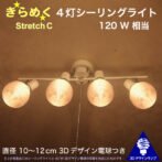 120W 相当 Stretch 4灯シーリングライト 直径 10〜15 cm おしゃれに きらめく裸電球 3Dデザイン電球つき 天井灯 天井照明 4畳半 4.5畳 3畳用