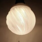 その模様やきらめきの秘密は当社独自の螺旋 3D 印刷製カバーにあります.幾何学的にデザインした波模様のカバーが円形配置の LED の光を美しく拡散させます.従来のガラスやプラスティックでは表現できない光をつくりだす,世界でだれもまねできない特徴的な種類のランプです.
