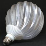 普通の電球は模様のないのっぺりした形をしていて,光を一様に拡げる変化のない光をだします.しかし,このシーリングライトで使用している 3Dデザイン電球には様々な形があり,こまかい模様があります.そのため,お好きなものを選択して形や模様・質感を楽しむことができるうえ,その光には強弱がつき,美しくきらめきます.サイズも直径 10 cm から 18 cm まであります.大きいサイズのほうがまぶしさがおさえられ,魅力的な光をだします.