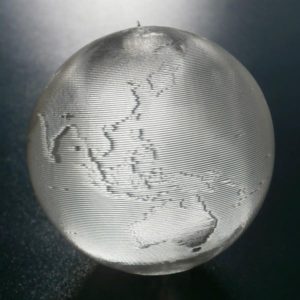 ただし,ブレスレットにつかうような直径 2 cm 以下の部品はまだ精度が十分でないとかんがえています.地球儀に関しても,直径 3 cm 以下だと日本が日本にみえるかどうか微妙です.螺旋 3D 印刷は FFF (fused filament fabrication) 型あるいは FDM とよばれる 3D プリンタにもとづいていますが,当社では使用していない光造形型のほうが精度はよいとかんがえられます.精度より光りかたやマクロなかたち,軽さなどを重視する場合には,つかっていただけるとおもいます.